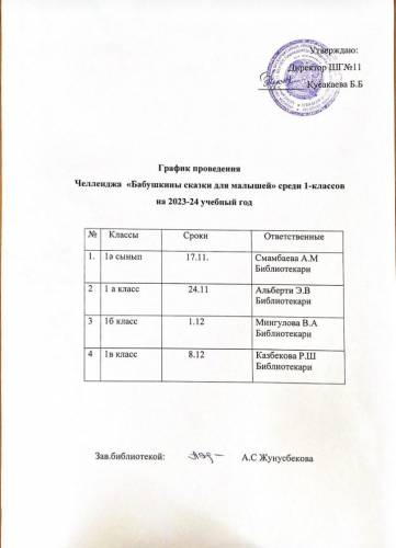"Әженің ертегілері" атты челленджінің кестесі